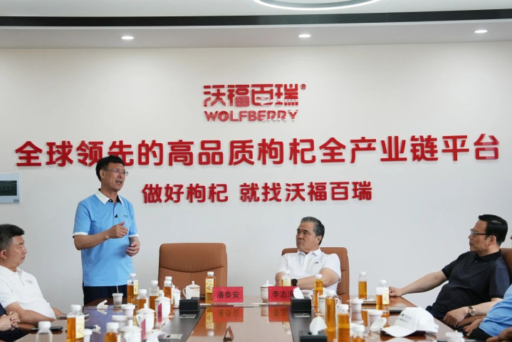 协会一行会亲参观沃福百瑞宁夏枸杞馆,了解了枸杞的历史文化、养生、种植以及沃福百瑞在国际国内贸易、科技创新、绿色发展、党建引领促进产业发展等方面取得的成果。